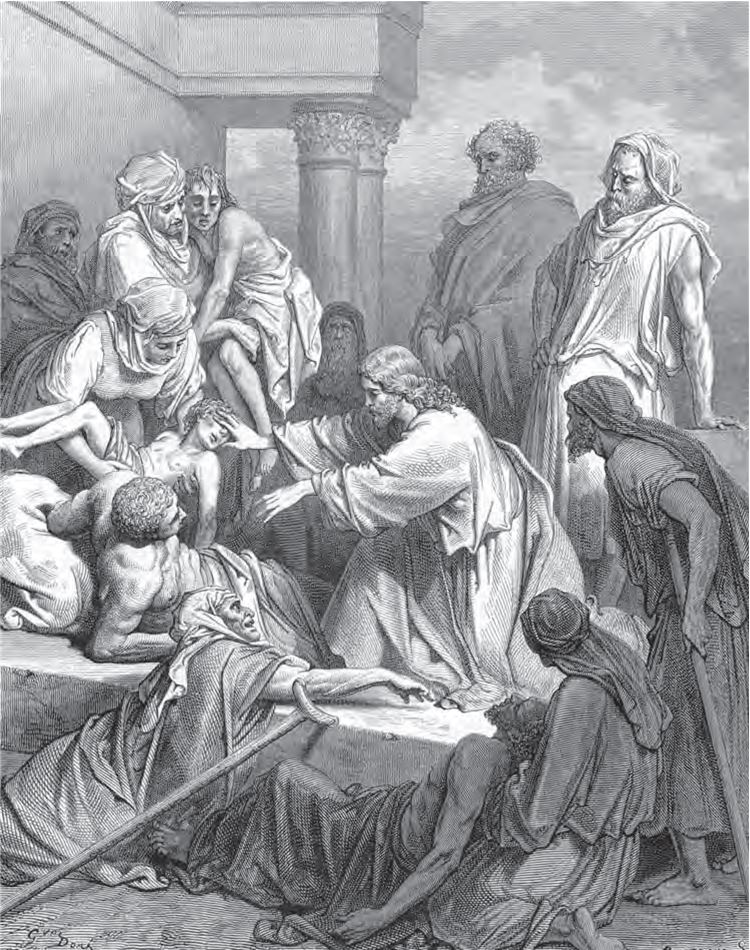 Направляясь в субботний день к храму, Спаситель проходил мимо Овчей купальни – Вифезды, находившейся неподалеку от северо-западного угла храмовой ограды. Она представляла собою бассейн размером примерно двадцать четыре сажени в длину и семь саженей в ширину, разделявшийся пополам каменной стеной. В ней купались овцы, предназначенные для жертвоприношения. Здесь иногда происходило необычайное движение воды, Ангел Господень по временам сходил в купальню и возмущал воду, придавая ей чудесные целебные свойства. Кто первый входил в купальню по возмущении воды, тот сразу выздоравливал. Эти чудеса притягивали сюда великое множество больных, слепых, хромых, иссохших, ожидавших движения вод. Был тут и один бедняк, который уже около тридцати восьми лет находился в расслаблении от паралича. Он жил неподалеку, был беспомощен, движение воды происходило нерегулярно, и другие, более счастливые и более сильные, дождавшись благоприятного момента, всякий раз успевали раньше его опуститься в купальню.