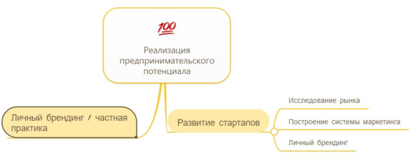 В моём примере это будет: развитие стартапов, личный брендинг, построение систем маркетинга, исследование рынка и управление проектами.