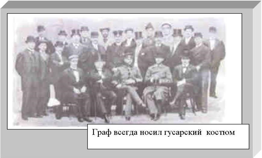 Граф стал посещать кружок Краевского и показывал хорошие результаты. Так, например, он брал с пола на ладони двухпудовую гирю, вытягивал перед собой руку и фиксировал горизонтальное положение руки с гирей. И так три раза подряд. Сдружись со всеми членам Кружка, он принимал деятельное участие во всех спортивных мероприятиях.