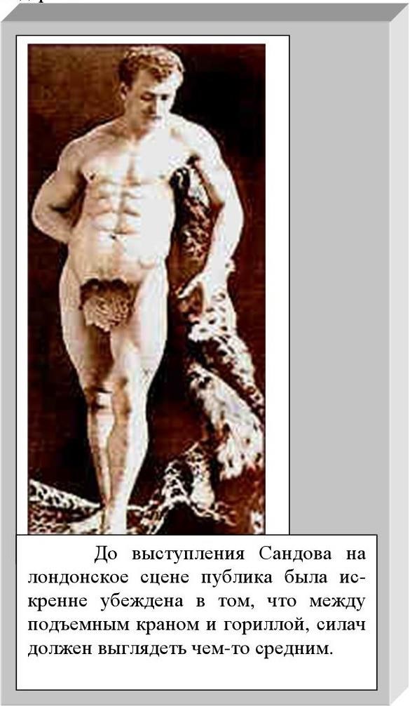 В 1897 году Сандов выпустил книгу "Сила и как её добиться". А год спустя вышел первый номер спортивного журнала. Это издание дало толчок появлению множества других подобных журналов, в том числе и в России.