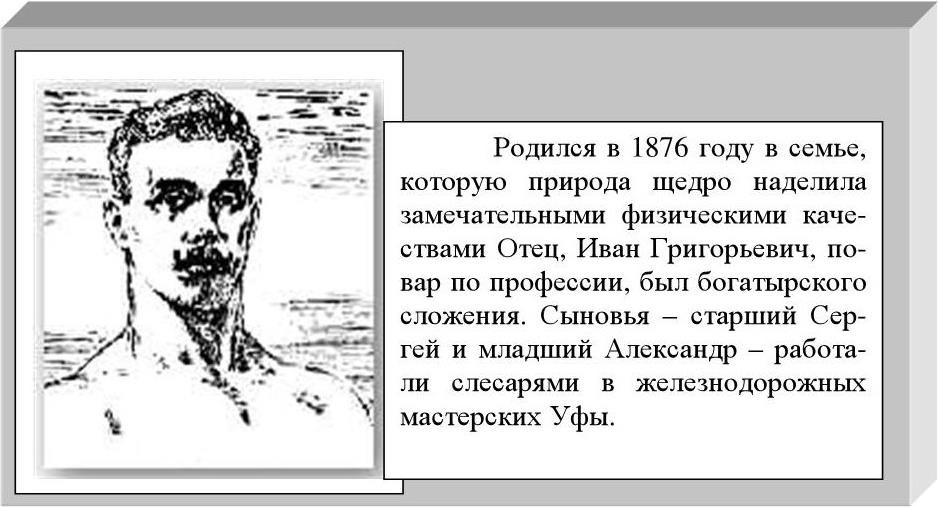 Шутя, на удивление товарищам по работе, усердно крестились братья двухпудовыми гирями, разводили с ними руки в стороны, лихо и искусно жонглировали. Сергей к тому же очень любил борьбу. И однажды волею случая приобрел более широкую известность.