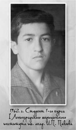 Поступление в институтУчилище я окончил с красным дипломом, то есть с отличием, что давало право сразу, без трёхлетней отработки, поступать в институт. Шёл 1962 год. Я успешно, на пятерки, сдал все вступительные экзамены в I Ленинградский медицинский институт им. акад. И. П. Павлова (I ЛМИ), где в предвоенный год училась моя мама. Даже сочинение написал на пять. Темой я взял «Почему я выбираю профессию врача». Нужно сказать, что как раз незадолго до вступительных экзаменов у нас в училище была государственная практика, которую я проходил в медсанчасти завода «Большевик». Заведовал отделением известный в городе хирург Брейдо. Он иногда брал меня на операции в качестве не медсестры, а ассистента – стоять «на крючках» – и объяснял мне ход некоторых операций. И вот как-то я ассистировал Брейдо в операции аппендэктомии у очень симпатичной девушки, которую я же готовил к операции. Короче, когда я пришел писать сочинение в мединститут, то первым человеком, с которым я столкнулся в вестибюле 7-й аудитории, была эта девушка, которая тут же сбежала от меня. Так я и не знаю, поступила ли она. Но у меня не было сомнений в выборе темы сочинения, которое я начал с описания этой истории. Наверное, проверявшие мои каракули преподаватели проявили снисхождение к возможным ошибкам – уж больно красивую историю я им описал.