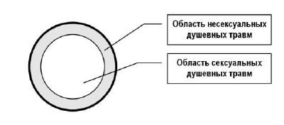 Мы выяснили, что для осуществления метода катарсиса (очищения души) больной должен вспомнить травмирующую сцену. Но как это сделать? Ведь травмирующих ситуаций человек мог пережить очень много и неизвестно, какая из них является причиной невроза. Для того чтобы организовать успешные поиски душевных заноз, Фрейд выдвигает предположение, что основная причина неврозов заключается именно в сексуальных травмирующих ситуациях. Таким образом, в области всех травмирующих ситуаций особо выделяется область сексуальных травм (рис. 12).