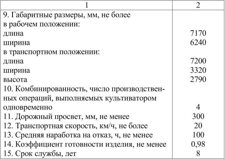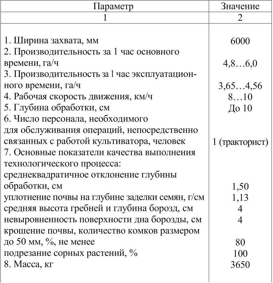 Таблица 1.1 – Техническая характеристика культиватора КППШ-6