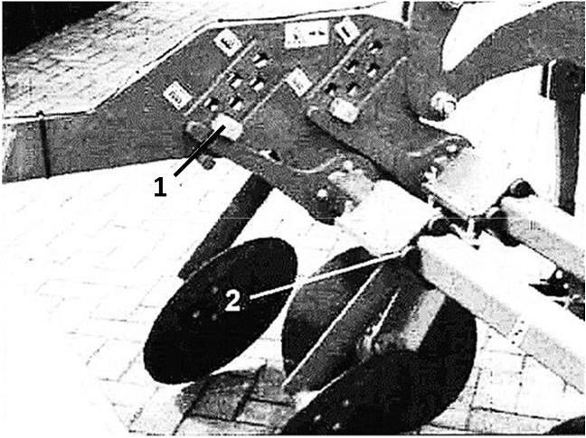Для защиты дисков от повреждения агрегат оснащен перегрузочным предохранителем в виде упругих резиновых элементов 2 (рисунок 2.4). После преодоления препятствия диски возвращаются обратно в свое рабочее положение посредством упругих резиновых элементов.