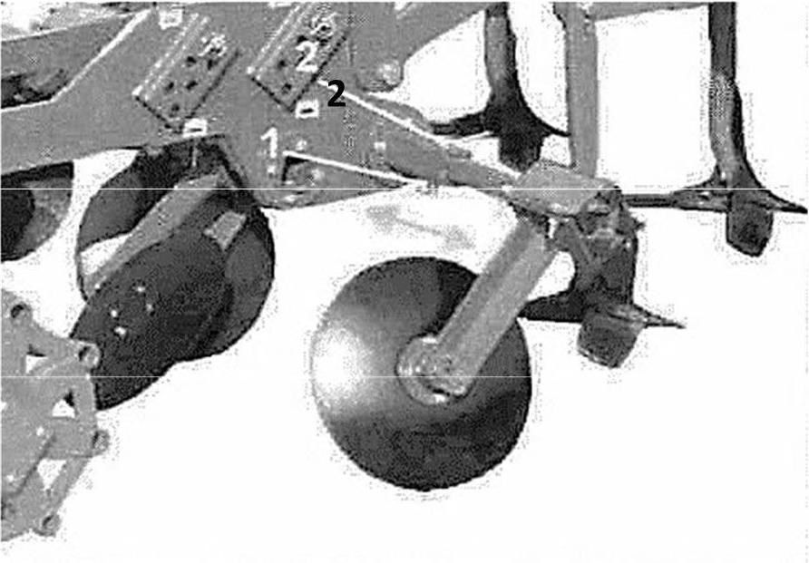 При поворачивании эксцентрикового пальца из положения 1 (глубоко) в положение 4 (неглубоко) производится точная регулировка рабочей глубины. Выбранные места установки и цифры на упорах эксцентриковых пальцах должны соответствовать.
