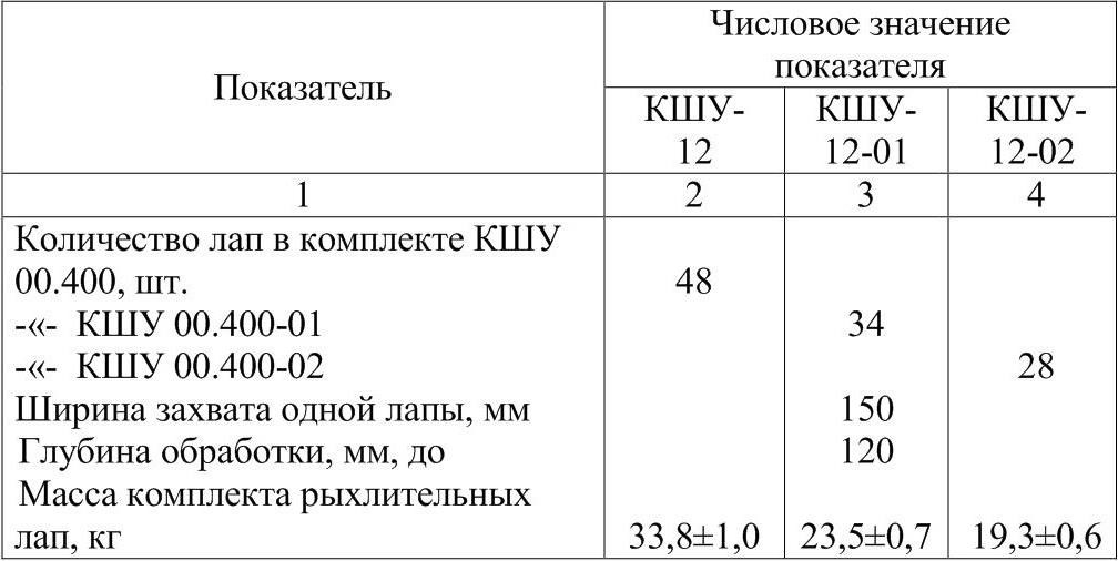 Таблица 3.2 – Техническая характеристика рыхлительных лап КШУ 00.400 (-01, -02)