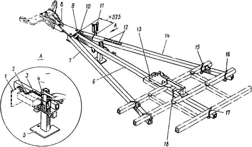 Сница (рисунок 3.5) присоединяется к центральной раме с помощью скоб 13, 15-18 и предназначена для агрегатирования культиватора с трактором.