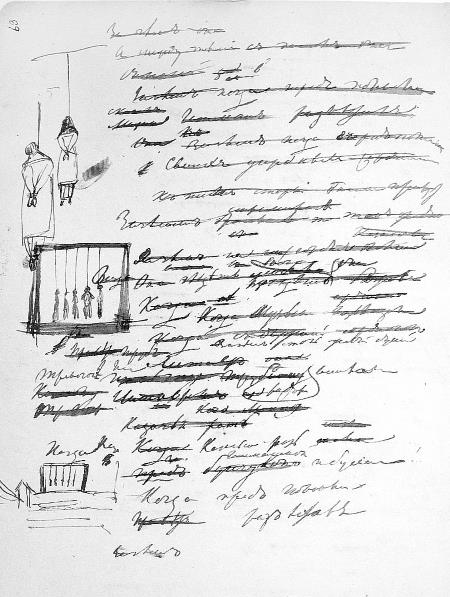 Изображение повешенных декабристов на полях рукописи А.С. Пушкина
