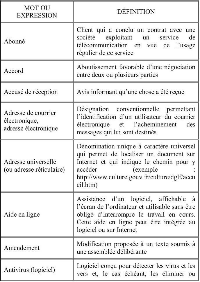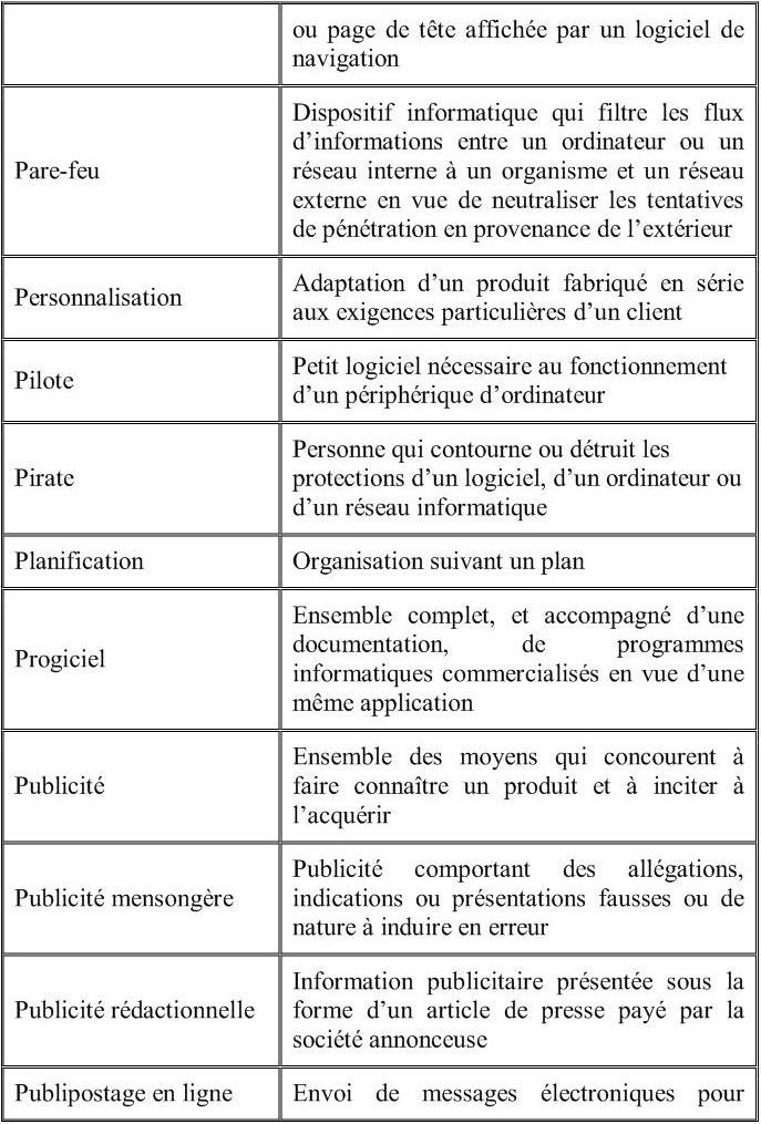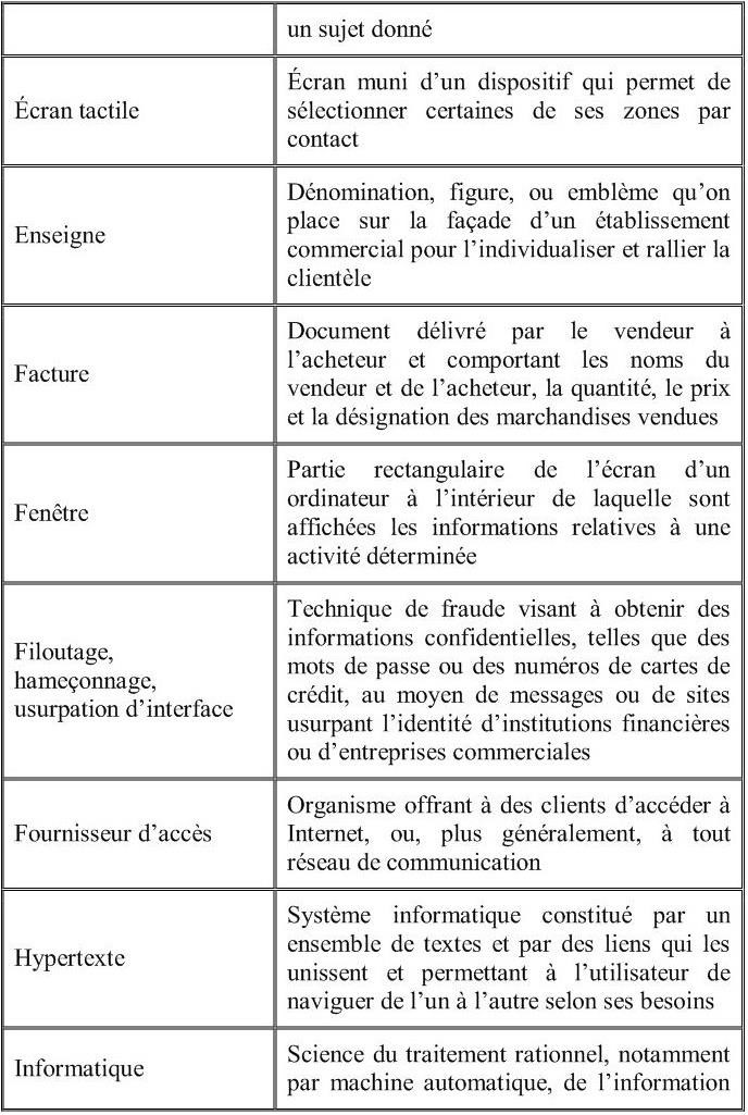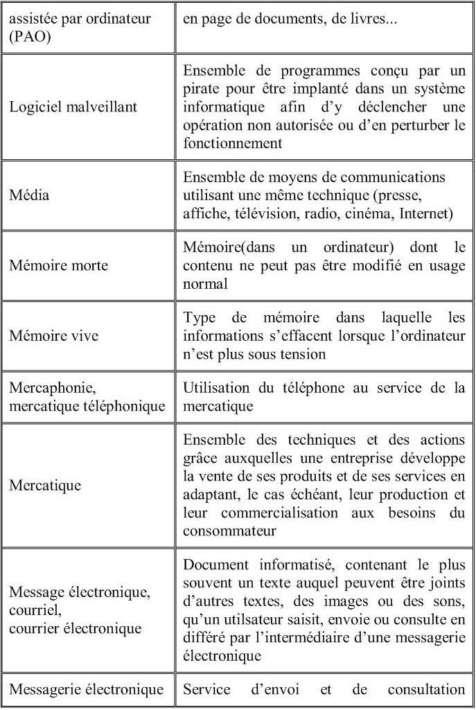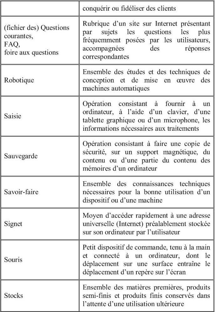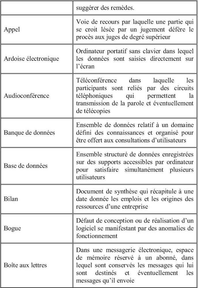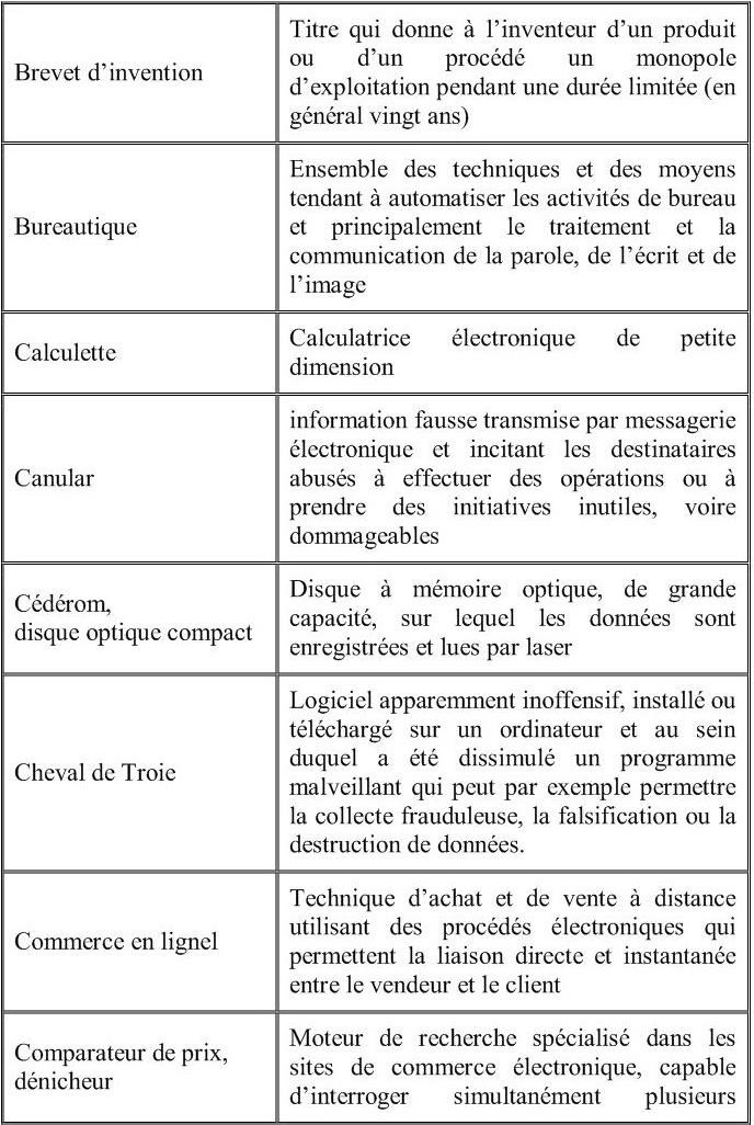 RECAPITULATION DES TERMES ET LEURS DEFINITIONS