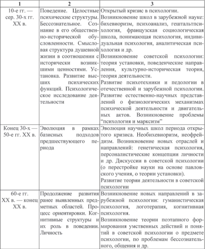 В целом же в содержательном плане развитие психологии можно подразделить на следующие этапы.