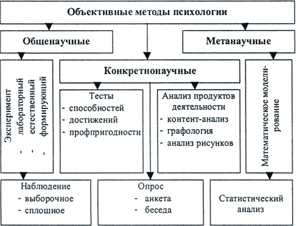 В психологии различают основные и вспомогательные методы. К основным методам относятся наблюдение, беседа, эксперимент; к вспомогательным – все остальные методы: оценок, анкет, тестов, самонаблюдения, интервью, анализа продуктов и т. д. Такое деление имеет относительный характер, ибо в ситуациях конкретного исследования тех или иных проявлений психики, изучения ее закономерностей вспомогательные методы могут стать основными, а основные – вспомогательными.