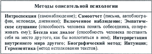 Кроме перечисленных в описательной психологии используются следующие методы: