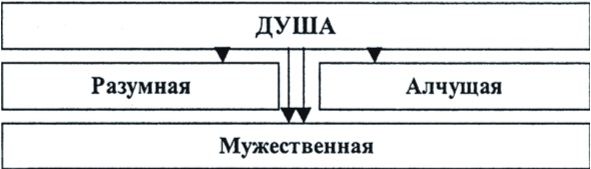 Логическим исходом философии пифагорейцев явилось учение о бессмертии и переселении душ. Пифагорейцы видели душу, состоящей из трех частей (рис. 3.2).