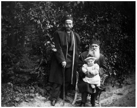 Л. Н. Толстой с сыном Львом и внуком Лёвушкой (Три Льва). Ясная Поляна.1899. Фотография С. А. Толстой