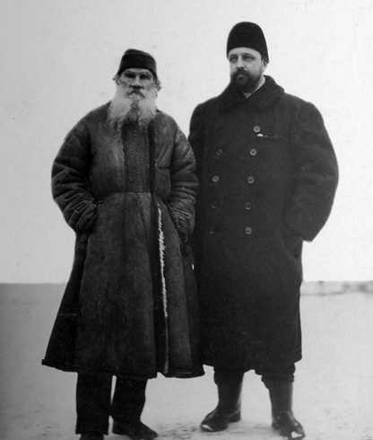 Л. Н. Толстой и В. Г. Чертков. С.-Петербург. 1897. Фотография В. И. Кривоша