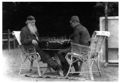 Партия в шахматы с Владимиром (Димой) Чертковым, сыном В. Г. Черткова. Ясная Поляна. Июнь 1907 г. Фотография В. Г. Черткова