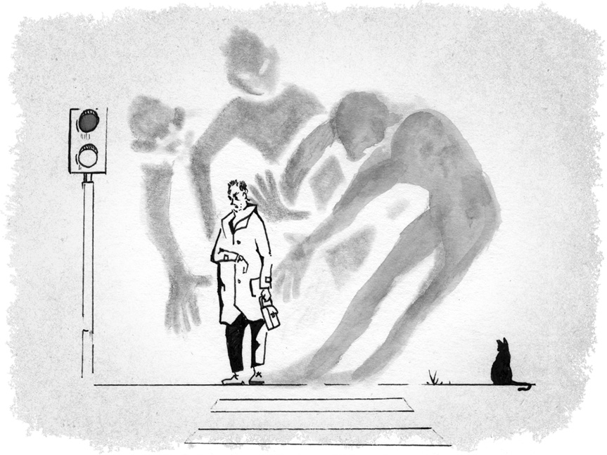 Однажды на улице он поравнялся с человеком, точь-в-точь похожим на умершего сослуживца, и попытался заглянуть ему в лицо, но сколько бы ни забегал с разных сторон, а лица так и не смог разглядеть, хотя тот вроде и не отворачивался.
