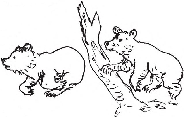 Я уже много знал о медведях. Теперь, наблюдая за берлогой, я мог более полно представить себе, что там происходит. Пока медвежата маленькие, хлопот у медведицы немного: пососут молока и спят на её теле, каждый у своего соска. Теперь же подросшие медвежата устраивали в берлоге активную возню: тузили друг друга, боролись, лазали по медведице, цеплялись за её морду, за уши. Особенно они досаждали матери, когда она их кормила. Молока у медведицы немного, и детёныши его быстро высасывали, а потом начинали лазать по животу, отталкивать друг друга от сосков, царапались, рычали, и медведица не выдерживала их борьбы, переворачивалась на живот. Медвежатам ничего другого не оставалось, как размещаться рядом с матерью на холодном полу берлоги.