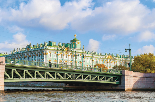 Дворцовый мост через Неву соединяет центр города с Васильевским островом