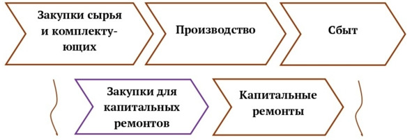 Закупки могут осуществляться в интересах, например, подразделения по капитальным ремонтам. В этом случае они будут интегрированы в обеспечивающие процессы, как показано на рис. 2.