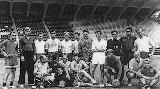 1945 г. «Динамо» (Москва) перед поездкой в историческое турне по Великобритании. Сергей Ильин стоит во втором ряду третий слева