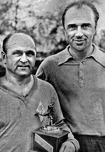 1957 г. Сергей Сергеевич Ильин (слева) с очередной наградой турнира ветеранов по футболу
