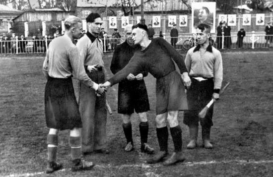 1938 г. Капитан «Динамо» (Москва) Сергей Ильин перед началом матча