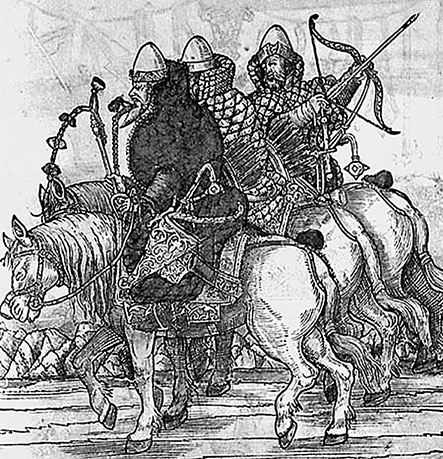 Вооружение русской дворянской конницы. Гравюра из книги С. Герберштейна Записки о Московии