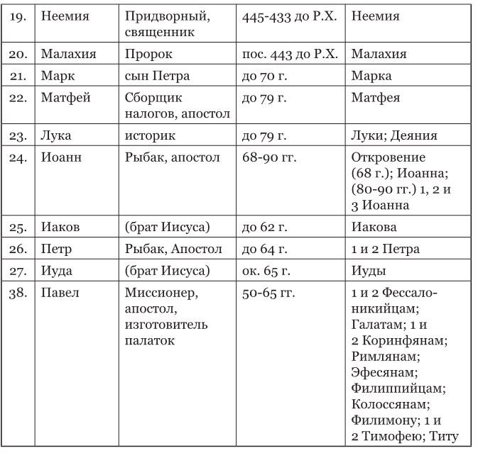 25 Таблица на странице 12 дает представление о том, кем были люди, писавшие Библию, и в какой последовательности были написаны библейские книги.