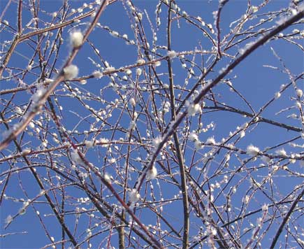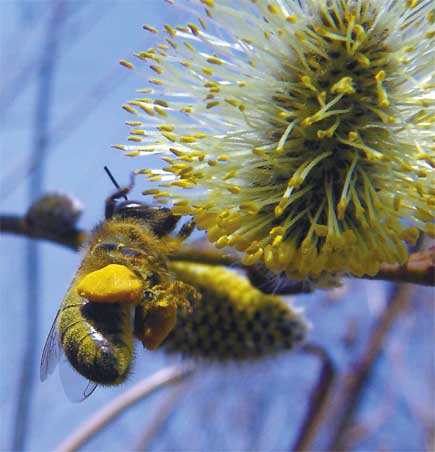 Еще заморозки по ночам, еще не слишком тепло днем, но верба первой отдает свои нектар и пыльцу пчелам