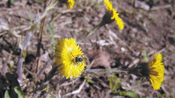 Мать-и-мачеха – растение из тех первоцветов, что с удовольствием посещают весной насекомые