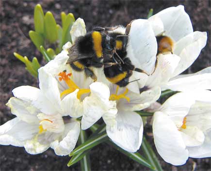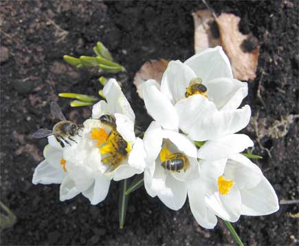 Даже цветки крокусов облюбованы пчелами. Много ли там можно с них собрать меда, не знаю, но по всему видно – пчелы довольны