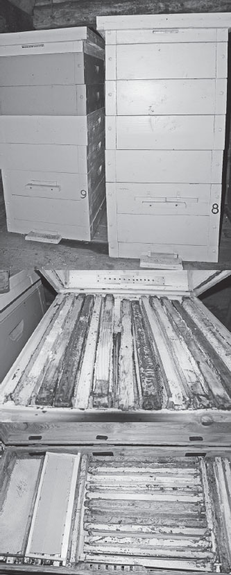 Проще всего для этого использовать специальный герметичный ящик, который лучше всего обить жестью или очень тонким металлом. Если в нем не хватает места, сушь можно расположить в свободных ульях и магазинных надставках. Основное требование к такому сотохранилищу – закрытые летки, плотное прилегание деревянных частей друг к другу и полное отсутствие щелей, сквозь которые могут проникнуть грызуны. Такие ульи желательно обвязать еловыми ветками.