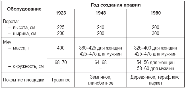 Значительное влияние на развитие игры оказывают инвентарь и покрытия площадок (табл. 1).