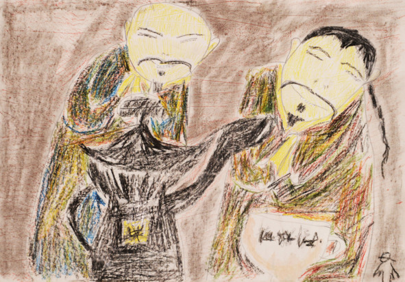 Воробьев искренне шутил с миром, это было его защитой от страшной реальности конца ХХ века в России. Он вступал в полемику с настоящим – уродливым временем поздних 90-х – во всех своих графических и живописных работах.