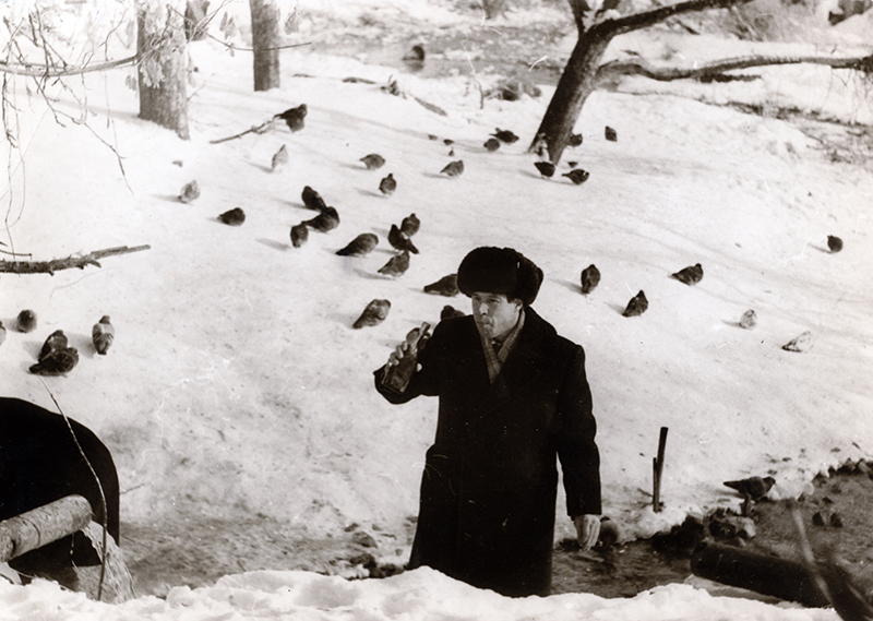 Подходя к роднику, я увидел чуть ниже среднего роста человека с фотоаппаратом в руках, который с увлечением фотографировал с разных позиций источник и вспархивающих из воды голубей. Мы познакомились и разговорились. Это был простой, доброжелательный, с приятным тембром голоса, человек. Он рассказал, как ходил к этому роднику в юные годы. Я подчеркнул тот факт, что даже в таком антисанитарном состоянии источника ни санэпидемстанция, ни областная клиническая инфекционная больница, ни другие лечебные учреждения не имели сведений о случаях каких-либо заболеваний в связи с употреблением его воды. Мы стали говорить о необходимости прекращения загрязнения родника и о его благоустройстве, о его будущем культурном и оздоровительном значении для воронежцев. Василий Михайлович сообщил, что обращался в Покровскую церковь к «высшему руководству» с тем, чтобы церковь взяла источник под свою опеку. А я изложил ему свои соображения по поводу профилактики здоровья. Так, дружески беседуя, мы дошли до проспекта Революции, где и распрощались.