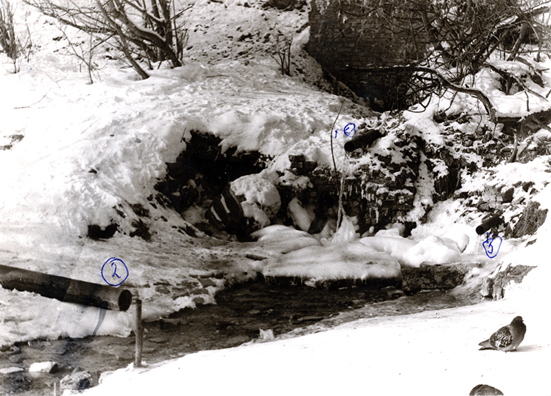 Я был благодарен этому роднику. Но печалило то, что вокруг него лежали вразброс пивные бутылки, полиэтиленовые и бумажные мешки, обрывки газет. Голуби ходили по мелкой воде, собаки тоже прибегали к источнику. Неудивительно, что службы СЭС, запрещая использование этого источника, находили в воде нитраты и нитриты… Ленинским райисполком устанавливались аншлаги о запрещении пользования водой источника. Но эти мероприятия не были эффективны, так как интерес людей к источнику только возрастал. И они продолжали ходить за святой водой. На мою просьбу благоустроить источник заместитель председателя исполкома Центрального района С.Ф. Мельников ответил, что источник расположен на меже Ленинского и Центрального районов и не подлежит деятельности исполкома. На письменное обращение в областную санэпидстанцию о необходимости содействия в благоустройстве источника я получил ответ: «По своим органолептическим свойствам родниковая вода действительно превосходит водопроводную воду Ленинского и Центрального районов г. Воронежа. Но по результатам лабораторных анализов, проводимых областной санэпидемстанцией ежемесячно, вода родника не отвечает санитарным правилам САНпина по бактериологическим и химическим показателям, содержит биологические загрязнения и в настоящее время не пригодна для питьевых целей. Никакими целебными свойствами вода родника не обладает». Ленинским райисполкомом по требованию санитарной службы неоднократно устанавливались аншлаги о запрещение использования родника. Но «закрыть» источник невозможно. Мероприятия по устройству запрещающих аншлагов были недостаточными. Ну то, что состояние источника тогда не вызывало никаких возражений по поводу взятия постоянных анализов очевидно из приведенных фотографий. В том числе, самой основной трубы (помечена цифрой 2).