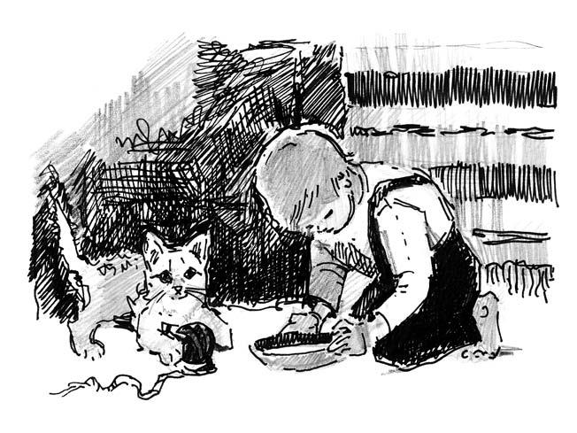 Громышка исправно пила парное Мартино молоко и быстро прибавляла в росте. Скоро она стала пушистой, ловкой, игручей кошечкой с быстрыми проказливыми глазами. Она без устали гоняла по полу пустые катушки от ниток и охотилась за всем, что двигалось: за ногами людей, за веником и половой тряпкой, за бившимися об оконное стекло мухами…