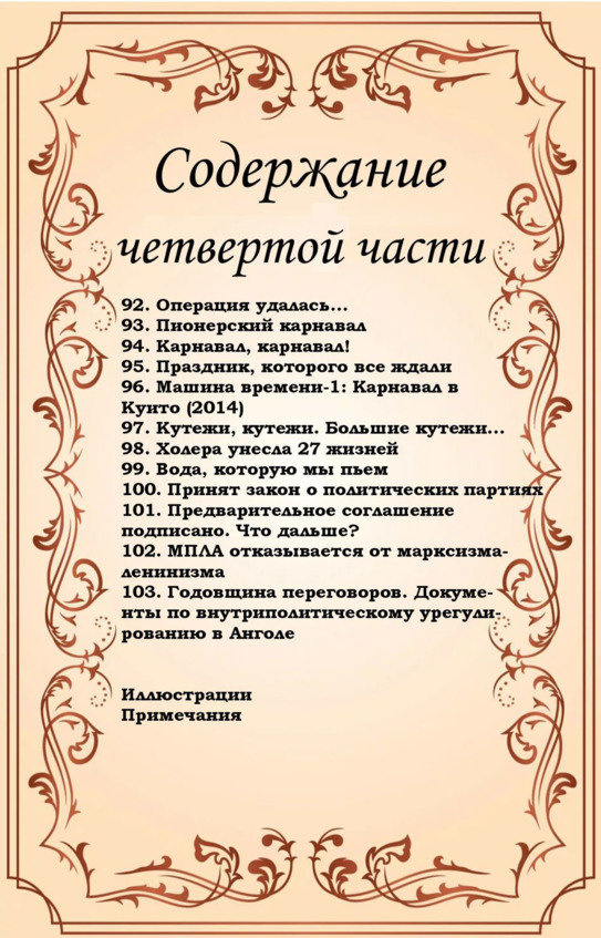 Свое второе рождение книга получила в начале 2000-х годов, когда у меня появился доступ в Интернет. В рукописи все больше стали появляться ссылки, комментарии, дополнения, сноски. С годами материал «старел», переставал быть современным и актуальным. Пришлось менять стиль изложения. Книга из «домашней», преимущественно исторического содержания, превратилась в страноведческую, географическую, научно-популярную, этнографическую. Кроме того, я расширил хронологические рамки и мне стало легче «перескакивать» из 90-х годов XX века в век XXI-й и обратно. Так родилось ее нынешнее название – «Ангола: Путешествие во времени». Рабочий вариант назывался очень длинно, просто и скучно: «Ангольские записки (из дневниковых записей дежурного коменданта торгового представительства СССР в Народной Республике Ангола 1990 – 1992 гг.)».