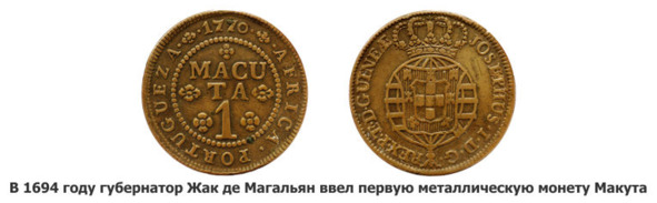 Чеканка монет для Анголы в макутах начата в 1762 году. 1 макута = 50 ангольским реалам.