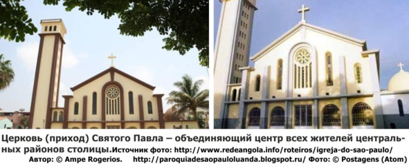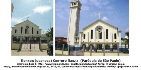 В 1933 г. по инициативе монсеньора25 Мануэля Алвеша да Кунья в районе Замбизанга (Луанда) началось строительство храма, а спустя 2 года в приходе Святого Павла прошла первая месса и совершен первый обряд крещения.