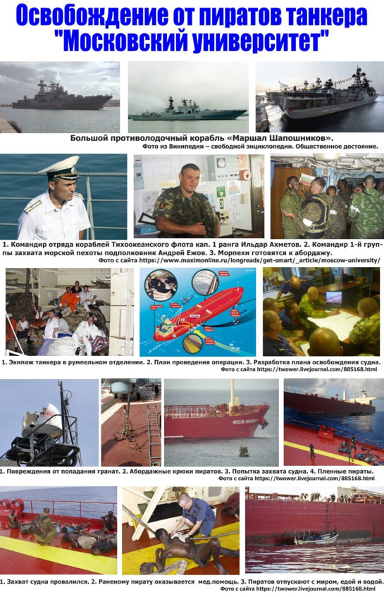 А вот что рассказал командир 1-й группы захвата морской пехоты Тихоокеанского флота, находящийся в тот момент на борту «Маршала Шапошникова» и участвовавший в операции по освобождению танкера «Московский университет» из пиратского плена, подполковник Андрей Ежов: