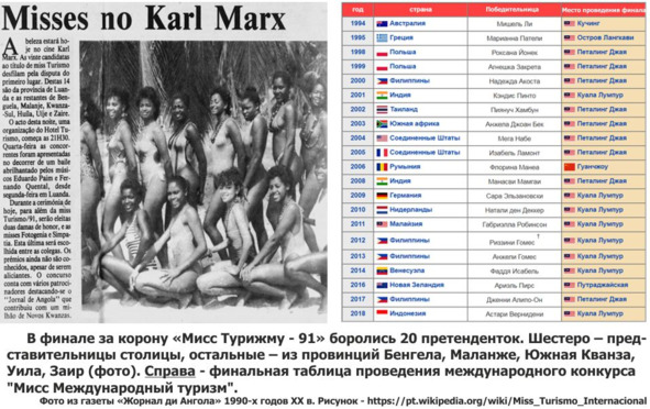Ангольский конкурс «Miss Turismo-91» проходил под патронажем редакции газеты «Жорнал ди Ангола», которая выделила на его проведение 1 миллион кванз (17 400 ам. долларов).