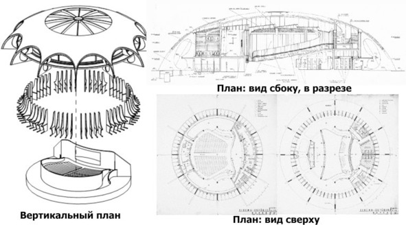 Здесь впервые в практике строительства открытых кинотеатров использованы перголы – навесы или пристройки для защиты прохода или террасы от палящего солнца.