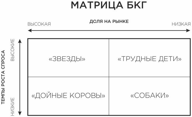 Модель «рост – доля рынка» разработана Бостонской консалтинговой группой и именуется «матрицей БКГ». Она предназначена для диагностики корпоративной стратегии, исходя из анализа бизнес-портфеля компании и выявления направлений его оптимизации.