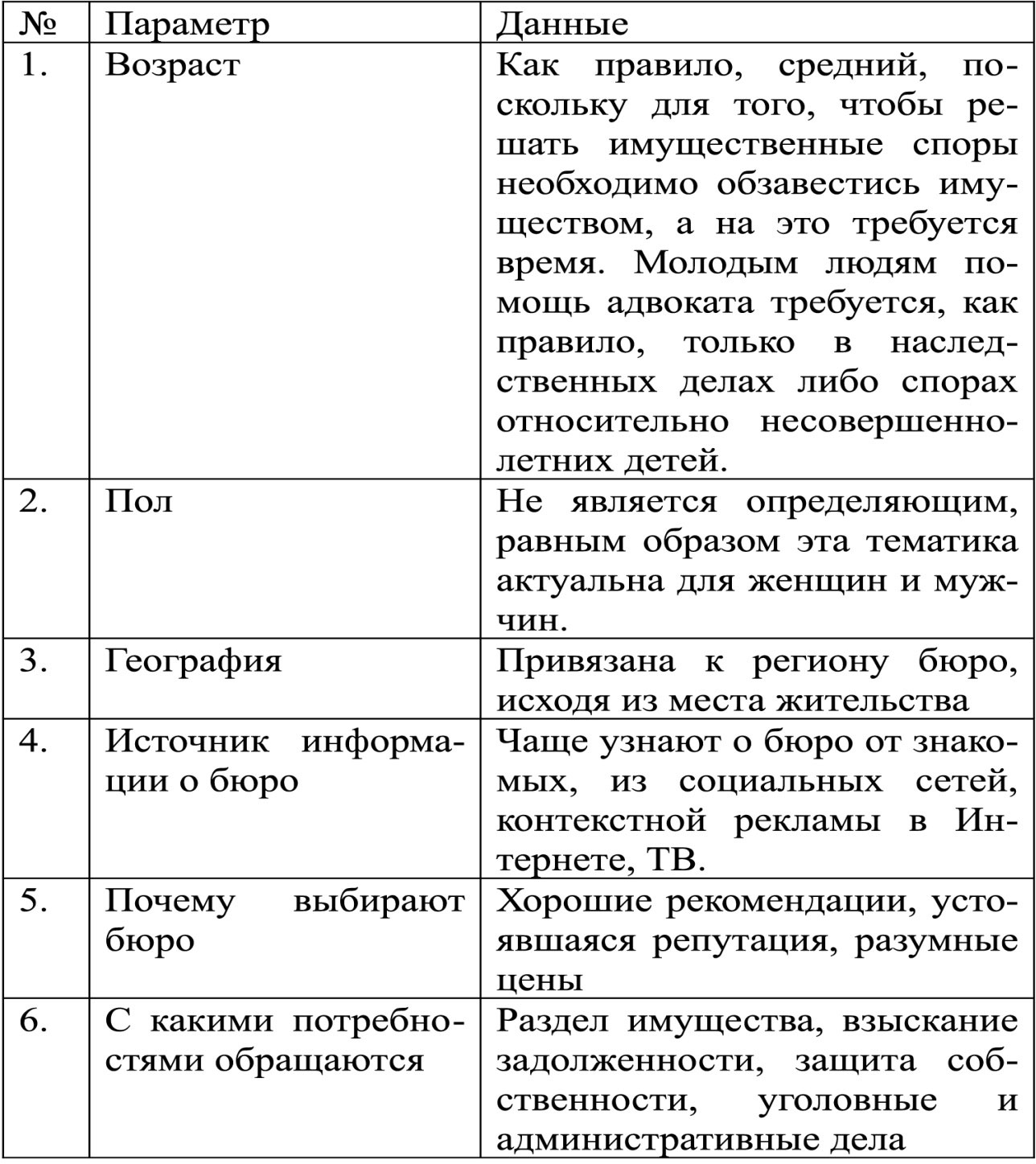 Наибольшей точности в описании целевой аудитории адвокатского бюро можно добиться, проанализировав уже имеющихся клиентов или клиентов прямых конкурентов.