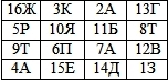 Для зашифрования слова «ЗАКАРПАТЬЕ» буквы вписывались последовательно в квадрат в соответствии с записанными в них цифрами, а в пустые клетки вписывались любые буквы (см. таблицу).