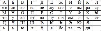 Последний шифр с российским алфавитом отличался от предыдущих тем, что как шифробозначения в нём были использованы не буквы какого-нибудь алфавита, а числа. Рассмотрим ещё несколько шифров раннего типа.
