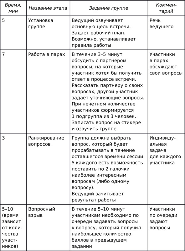 Дейв Бэйли (Dave Bailey) рекомендует в начале совещания поставить перед участниками 3 простых вопроса[30]: